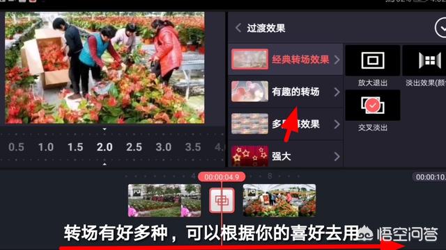 2019-01-12 16:40:15 - 调节好了视频的颜色后,就可以设置转场,就是这个镜头跳到下一个镜头的特效,选择转场特效后,滑动进度条设置转场时间。