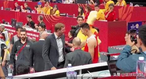而这,或许与中场结束时易建联与诺维斯基的一番短暂交流有关。在中场休息的时候,在场边观看,中国男篮比赛的诺维斯基主动走向易建联,跟他握手友好示意,并略微寒暄了一下。虽然两个人并没有太多的言语交流,但我猜测诺维斯基的想法是:阿联,我把投篮包给你咯,下半场好好发挥!(调侃)
