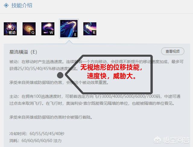 龙王的游走能力来自他的E技能-【星流横溢】,开启后朝着龙王指定的方向飞行,逐渐的获得移速加成。这个加成在达到100后便可无视地形,直接飞到目标位置。同时在飞行过程中,龙王还可以配合Q技能-【星核急涌】来使用,增打出控制和爆发效果。