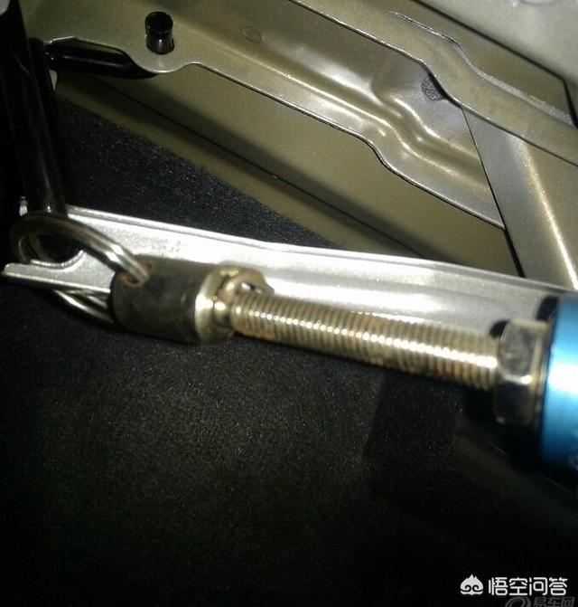 完全打开后备箱,然后调整螺丝长度,使之能够适用于自己车上的结构,将弹簧一端固定在后备箱里面的铁板上,另一端连在后备箱盖的支撑住上,保证弹簧此时没有受力,既没有压缩也没有伸长就可以了。此时弹簧处于自然状态,关门的时候弹簧被拉伸,开门的时候,靠弹簧弹力将门打开。 一根弹簧不够可以再加一根!