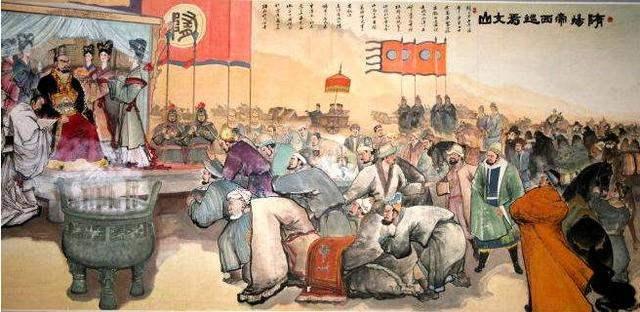 大业五年(609年),隋炀帝为了彰显国威、促进贸易交流、巩固河西走廊的战略地位,在甘肃山丹县附近的焉支山下举办了万国博览会。当时参加这一盛会的有突厥、新罗、靺鞨、毕大辞、诃咄、传越、乌那曷、波腊、吐火罗、俱虑建、忽论、诃多、沛汗、龟兹、疏勒、于阗、安国、曹国、何国、穆国、毕、衣密、失范延、伽折、契丹等三十余国,史称“万国博览会”。隋炀帝更是跋涉6个月,亲自前往主持会议。