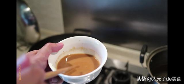 8.将玉米淀粉加水加老抽适量搅拌均匀淋入锅中,翻炒出锅