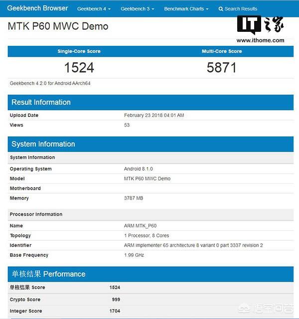 据GeekBench 跑分软件显示,p60的单核跑分成绩达到了1524,多核跑分成绩达到5871,