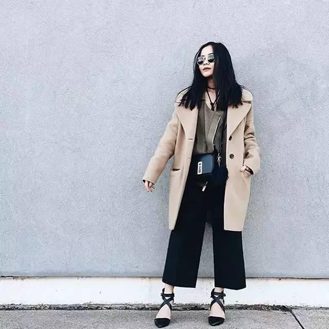 觉得略显沉闷,可以搭配阔腿裤和尖头绑带鞋,中和了过分的成熟和古板,搭配出新鲜感。