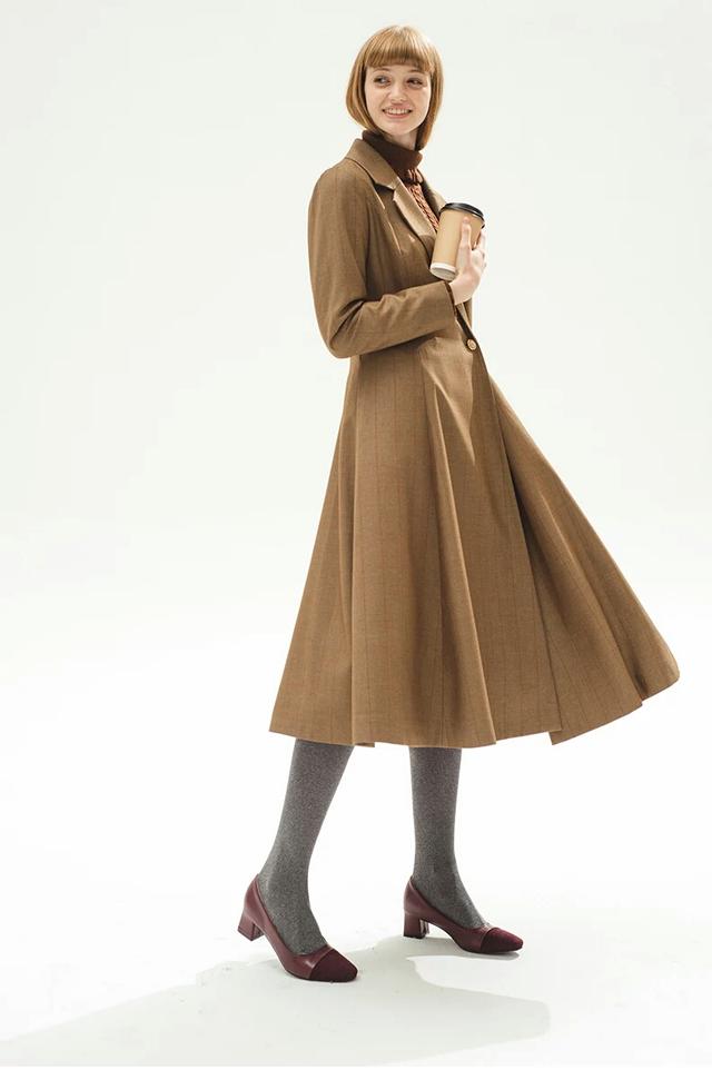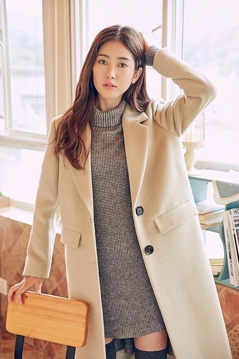 纯色款的及膝大衣算是经典款,可以在翻领上搭配一些Q萌的胸针,让你从满大街的风衣look中凸显自己的风格。