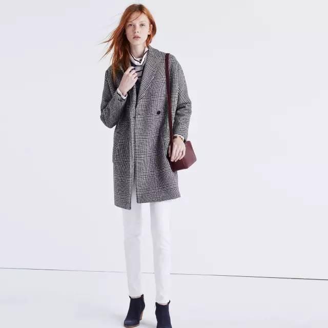 黑白细纹茧型大衣比较百搭,配上仔裤和短靴简单舒适。