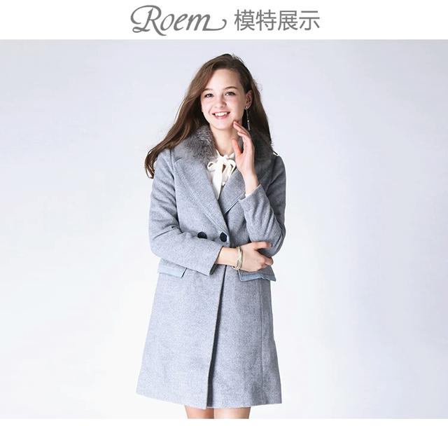 长款浴袍式外套很有垂坠感,领子加上貉子毛多了份贵气感~