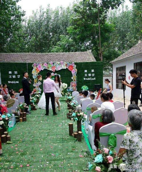 农村婚礼现场的室外布置也是在户外的,户外婚礼现在已经在国内掀起一阵热潮,大家都希望能够在阳光明媚的天气,青翠的草地上举办一场自然、清新的室外婚礼。这种浑然天成的户外婚礼很有时尚感,婚礼方式野比较独特,梦幻气氛更加浓厚,表现方式也更加大方自然。