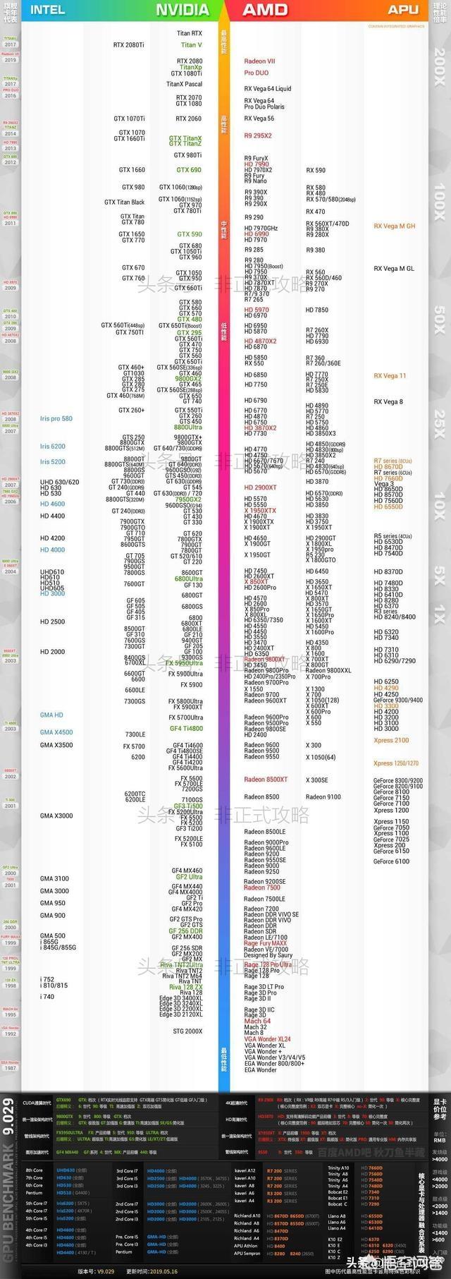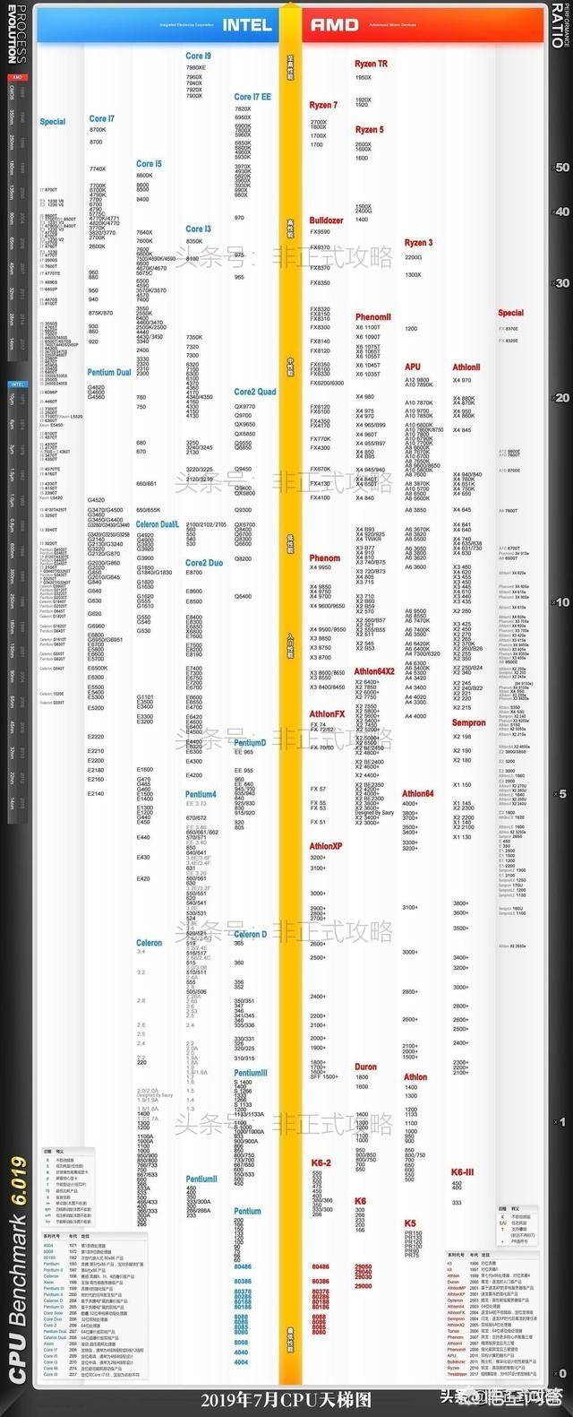 给大家一套CPU和显卡天阶图,可以根据上面的硬件名称位置来对比自己电脑的性能,以便于大家对电脑的档次有个了解。