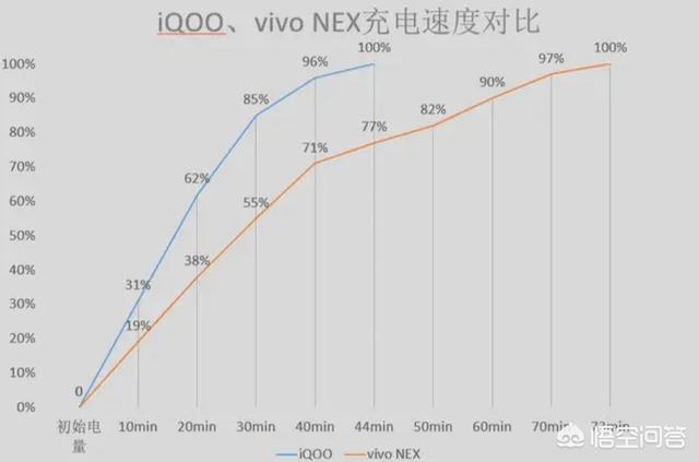 众所周知iqoo搭载的是4000毫安时电池除了低配版其他均配备44w黑科技快充,在3000元价位,这个配备基本上是最突出的存在,没有哪款手机有如此厉害的配置。根据实测我们也可以看出端倪。从和同为4000毫安时电池的vivonex我们就可以看出来差距。iqoo的优势非常明显。