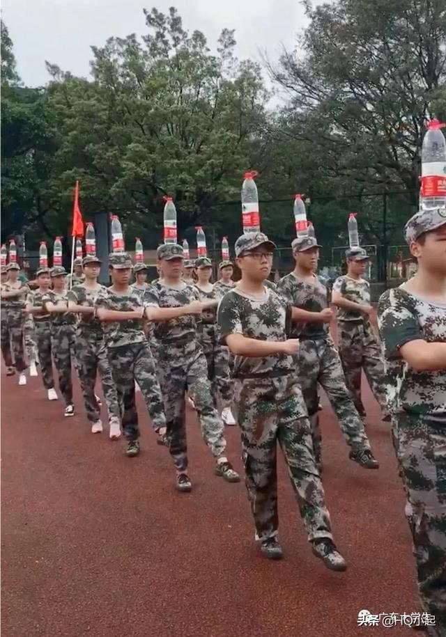 教官要求新生们头顶大矿泉水瓶