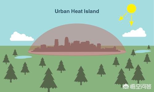 热岛效应:一个地区的温度高于周围地区。最常见的就是城市热岛效应。城市中遍布高楼大厦、柏油马路,这些都会产生蓄热作用。同时绿色植被相对较少,空调设备和车辆较多等等因素,共同作用导致城市中的温度往往高于周边郊区的温度。很简单,从北京市内出来,前往延庆或密云等郊区,体感明显会凉爽一些。
