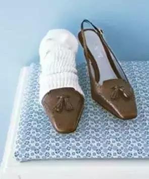 淘汰不用的长丝袜和短丝袜的组合是最棒的,也是最可爱的撑鞋形架。只需把勾破的长丝袜或变薄、松掉的旧袜子塞进脚跟部位就完成了。