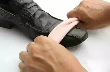 我们常有喜欢一双鞋就一直穿它的习惯。可是如此一来,鞋子没办法每天做好妥善的保养,很容易就变形走样了。鞋子在经过一整天的磨损之后,为了不让它变形,最简单的解决之道就是接下来介绍的方法:把破掉的长丝袜塞进旧袜子里,自制简易的撑鞋形架。由于用的是自己穿过的袜子,尺寸也恰到好处。