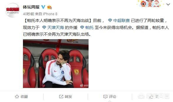 天津队能做什么呢?这样一支处于托管状态的球队,内部人心浮动,稍微有点志气、心气的球员,都指望早点离开这支有今天没明天的球队。例如球队大腿帕托,已经明确表示不再为天津天海出战…