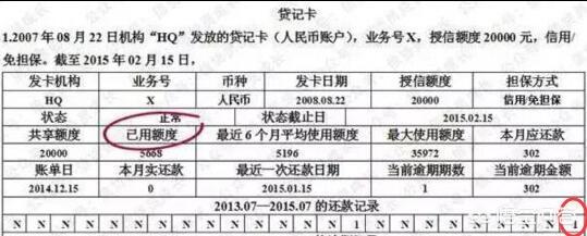 上面做这个图片是个人详版征信,记录的是2013年7月到2015年7月的还款记录,在右下角圈住的数字“1”,显示的就是2015年7月曾经逾期了。