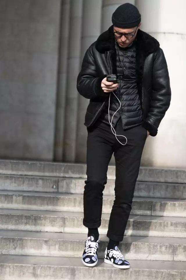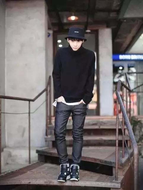 好吧,这位小哥颜很正导致这身看起来也没什么不妥,但如果穿在普通人身上就很灾难了。实在不建议冬天从头到脚一身黑,而且这种款式老气的外套没有其他单品来配合的话你真的看上去与时尚无缘。