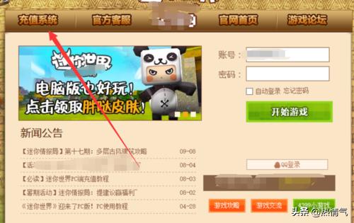 根据各个平台的不一样,充值的位置可能也会有所区别,以游戏平台4399为例,在游戏登录界面就可以看到有个充值系统。