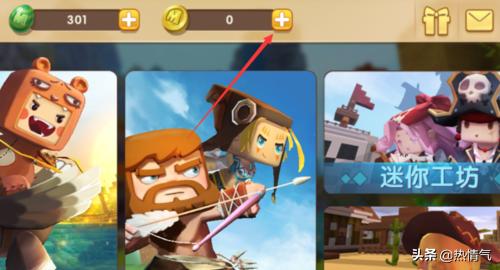 如果你玩的游戏平台在登录界面找不到充值系统的字样也没关系,我们进入到游戏里面,有个迷你金币,点击后面的加号。