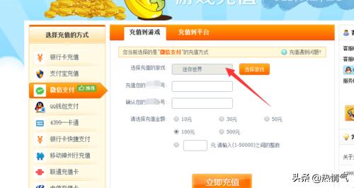 之后选择充值的金额,确定之后会跳转到平台的充值系统里进行充值,跟之前一样选择充值方式进行付款即可。