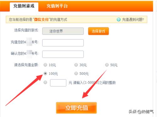 最后确定充值金额,点击立即充值,如果你选择微信支付,只需要使用微信扫码即可。