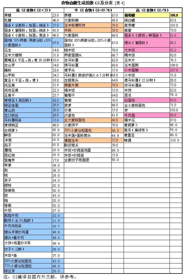 血糖生成指数较低的食物