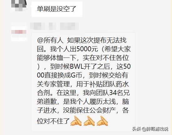 既然无法找回,便有成员提出团长应该进行一定的补偿,而该团长也提出了补偿方案,但是方案实在令人无语,个人补偿5000R,却直接换成金币,并且放在公会仓库中作为公会活动资金,最终一些对此补偿方案不满意的玩家便把此事曝光了出现。