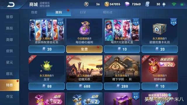 这一次的愿望红包,其实是一个捆绑的打折,以前我们看到是部分英雄打折,这一次的红包其实是捆绑打折,你购买4个英雄皮肤,才可以优惠。