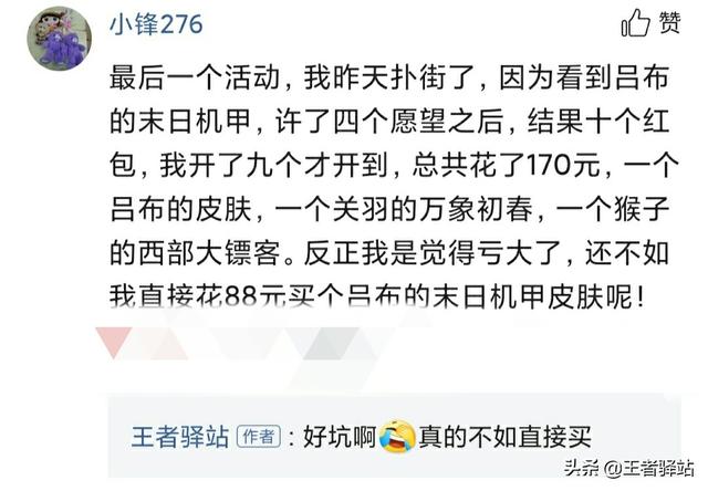 不得不说这个许愿送红包的营销活动太成功(坑)了,对于氪金玩家来说,当然无所谓,对于大部分微氪玩家来说,想通过运气来开个皮肤,那就是天美收割韭菜的时候来了,很多玩家应该都跟我一样想开头两个红包来碰碰运气。