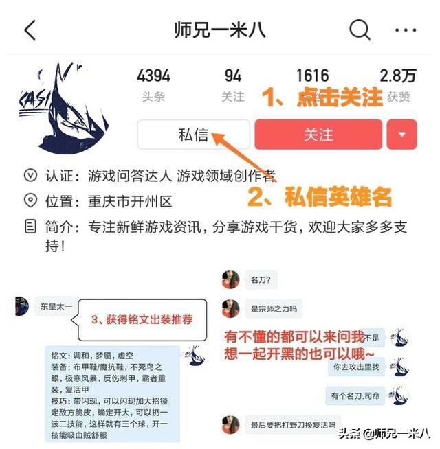 关注私信英雄名即可获得出装铭文推荐,助力你的上分之路!