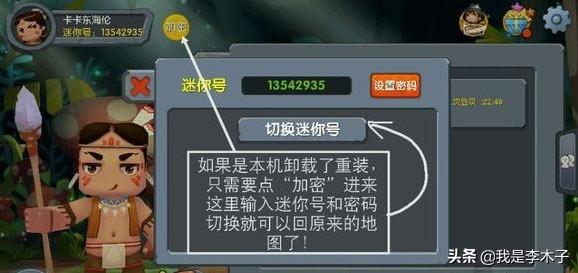 如果是本机卸载了重新安装,只需要点击加密进来即可, 点击这里输入迷你号和密码切换就可以返回自己的原来地图;