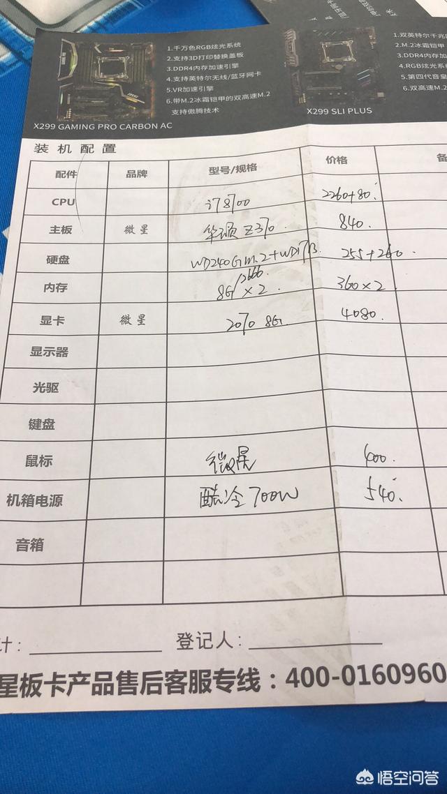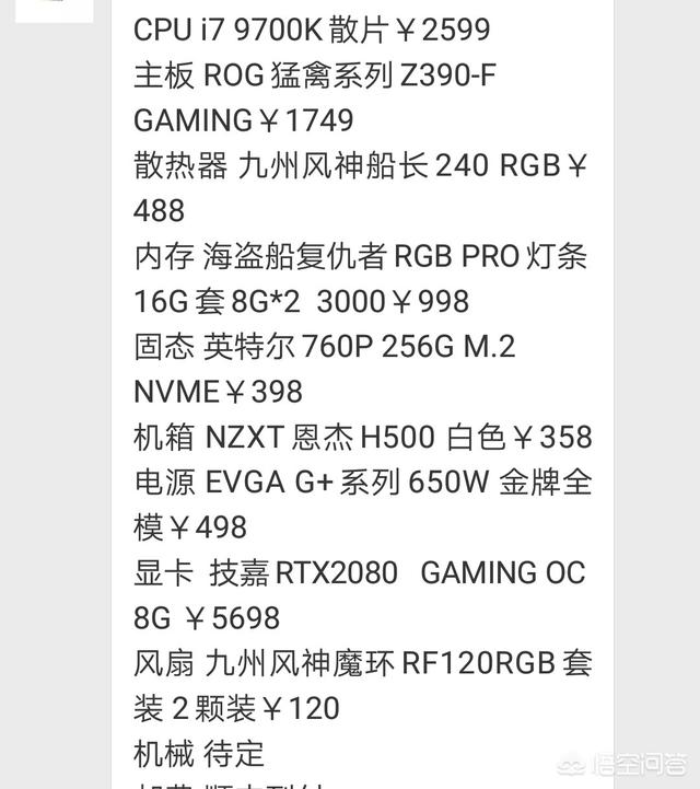 i7-8700+B360主板+RTX2080+8GB*2+256GB固态硬盘+额定500W金牌电源+机箱,算下来差不多万元左右。