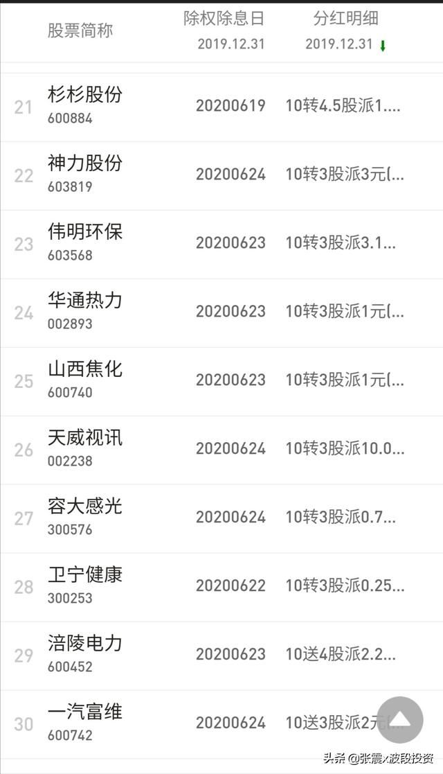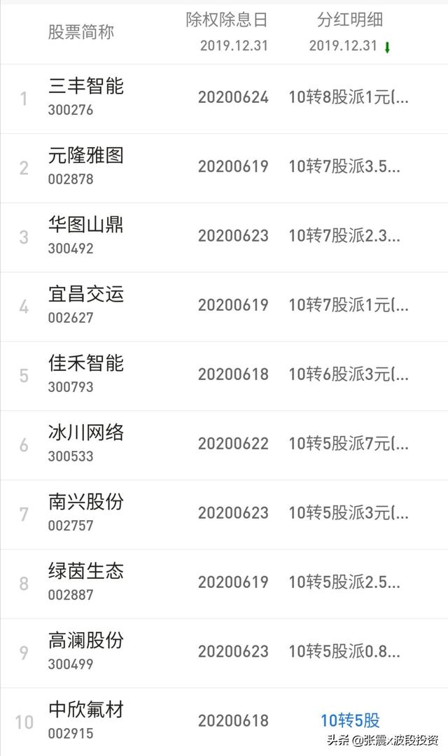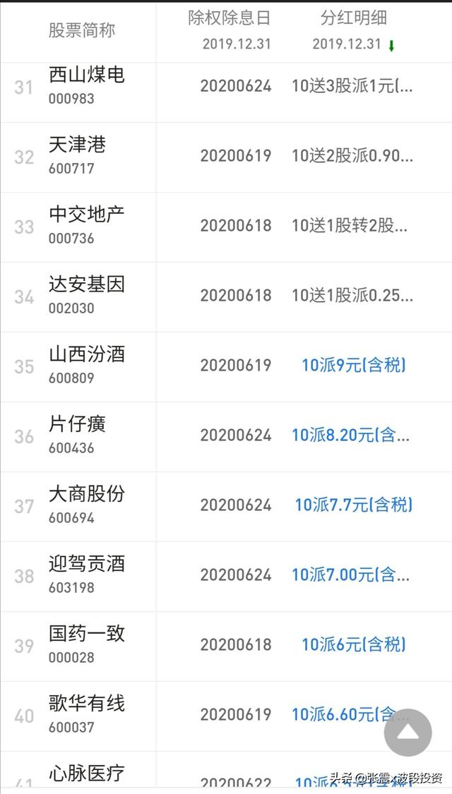 各大软件都有备份分红提前一周预告的分红登记日和除息日,你可以去搜啊,但是你要清楚,每股送你一元钱的,不够持股一年的你要交10%税的,还要嘱咐你登上记,第二天股价少你一元钱啊,不涨一元四以上你赔钱啊,举例:如果你买100元股票进去登记每十股10送10元给你,那就是一股给你一元钱,扣税扣买卖手续费,你自己计算吧,碰上那些用高分红高送股的高位放量出货票,那是用西瓜换芝麻亏大钱生意啊!
