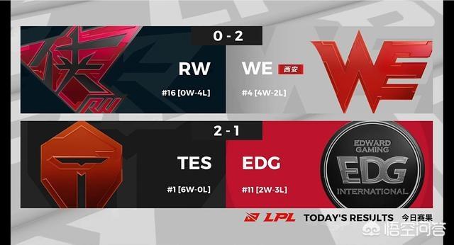 英雄联盟LPL夏季赛,在6月26日结束了两场重量级的比赛,分别由WE二比零轻取了RW侠;TES让一追二战胜了EDG,继续捍卫了四大天王对阵御三家的荣耀。