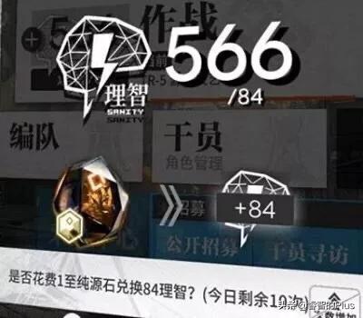 2.理智已满的,可以通过用源石换理智的方法,获得一次和理智上限同等数量的理智点,每日上限10次。(玩家总理智点高于900点,就算每日上限10次还没用完也玩法用源石换取理智,系统送的理智还是能领取,也作数的,只是源石不能换了)