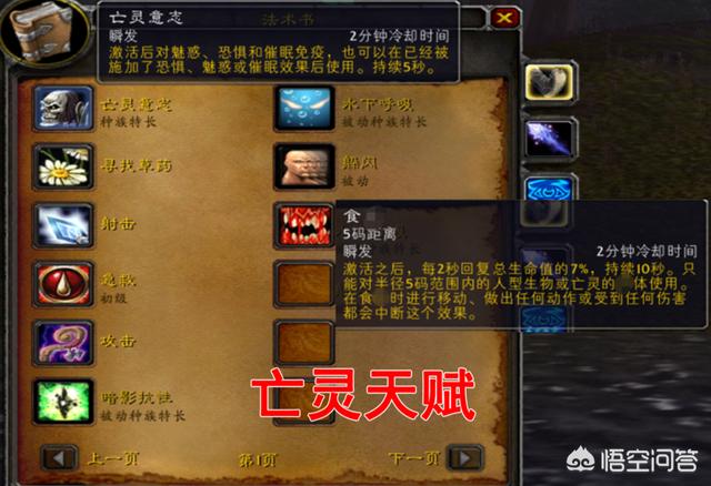 亡灵意志-瞬发,2分钟冷却,激活后对魅惑、恐惧和催眠免疫,也可以在已经被施加了恐惧、魅惑或催眠效果后使用,持续5秒暗影抗性-被动