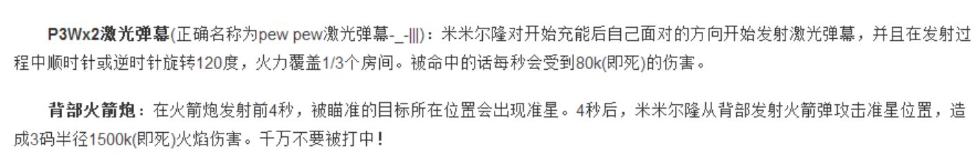 米米尔隆有扫射,有500万(地上出红圈,中了直接500万伤害秒杀。所以开荒的时候都叫500万)