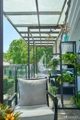 同样阳台不做柜子,又不想光凸凸的,这样我们可以根据装修的风格来做造型,例如在美式风格中 ,我们可以做成有弧度的造型,垭口的宽度在20公分左右都可以,非常的美观。新中式里可以做成直来直去的垭口,尺寸都在20公分左右。非常的美观。