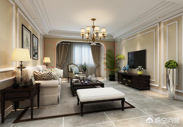 客厅与阳台之间的垭口墙垛,一般留40-70厘米左右宽即可,主要用于安装暖气片,挂窗帘,方便在阳台做柜子。这个尺寸根据客厅阳台的开间来确定,客厅开间比较宽,一般留的墙垛相对也要宽一些,左右最好宽度一样,这样好看一些。