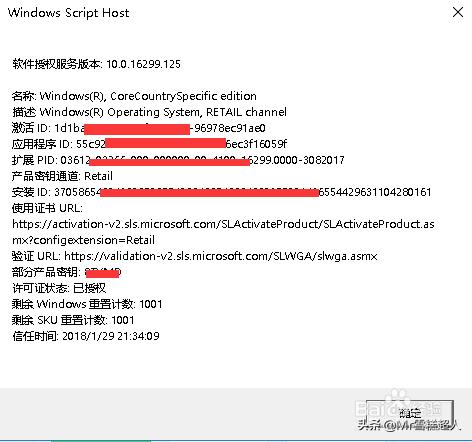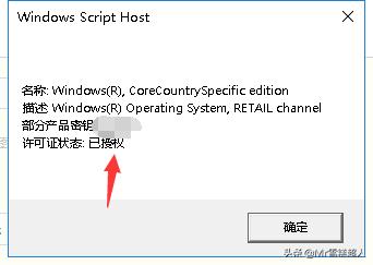 这个指令可以显示操作系统版本(win10),部分产品密钥(关键),许可证状态(已授权),如下图所示