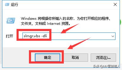 接下来在运行框输入slmgr.vbs -dli命令点击确定按钮,如下图所示