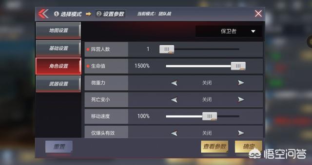 点击“角色设置”,调整为保卫者一方,将阵营人数调至1(如果不调的话就会产生四个人机队友),生命值调整到最高,移动速度拉满,击杀回血拉到最大值,死亡复活时间拉到最低。对于潜伏者的改动只需要调两个地方,一个是头部大小拉到最大,一个是复活时间拉到最低。简单的来说就是一句话,对我方怎么有利就怎么来。