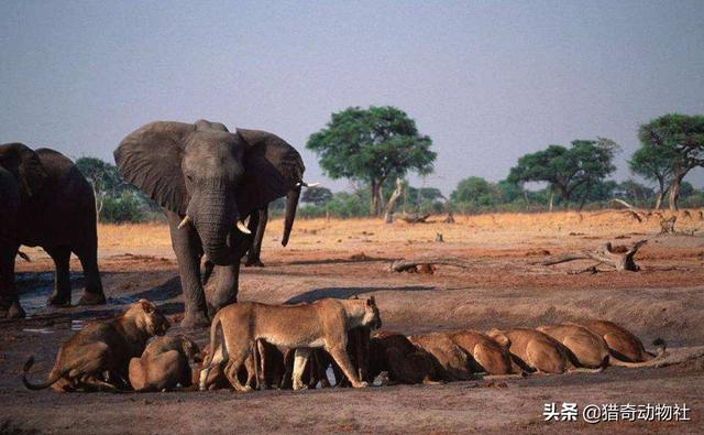 所以,狮群无论是多么大,见到成年雄性非洲象是没有任何的战意的。主要原因就是一旦开战,伤亡率太高,而且还很难猎杀大象。