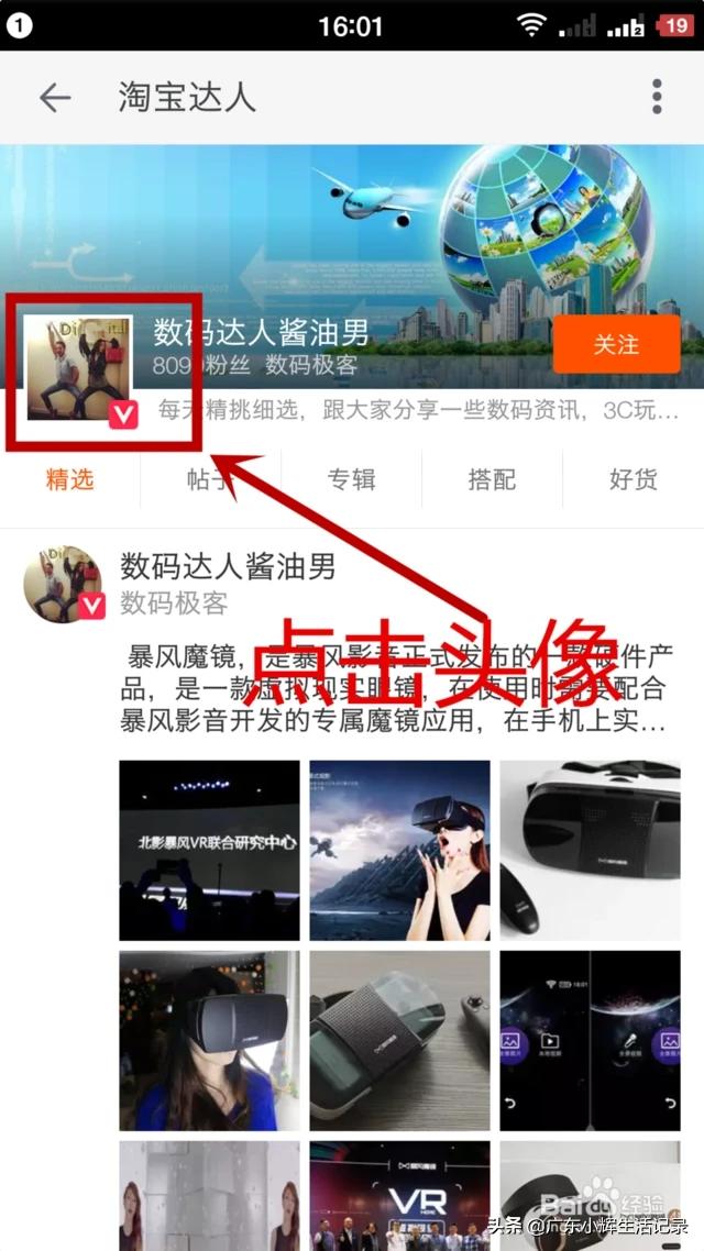 搜索下拉框会出现相关的淘宝达人,随便点一个进去他的主页,我们以第一个达人(数码达人酱油男)为例,进去他的主页,然后店家他的头像。