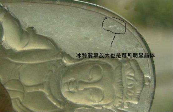 无论是品质多高的多透明的A货都是一定能看到晶体结构的 区别只在于晶体的大小粗细