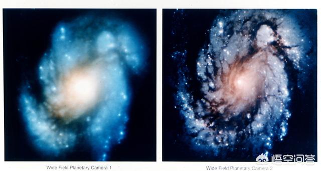 哈勃在第一次维修任务前后拍摄的M100的照片