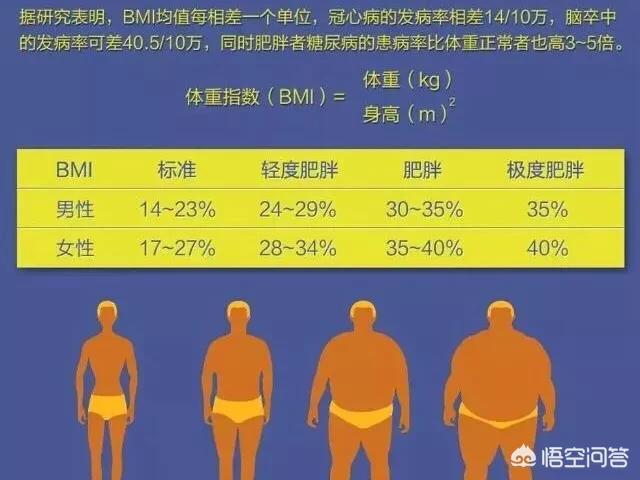 男性标准体脂率是14——23%,女性标准体脂率是17%——27%,超过这个指标就是胖。
