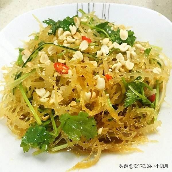 凉拌的话:用热水泡,大约半小时就可以。一般等到半软,还有点发脆的时候最好。用香油、味精、葱丝等调合就可以吃了。