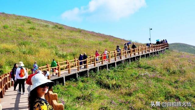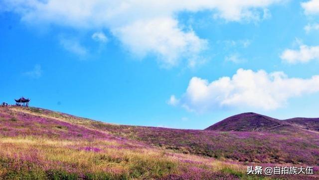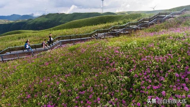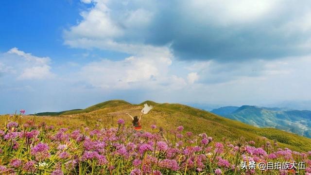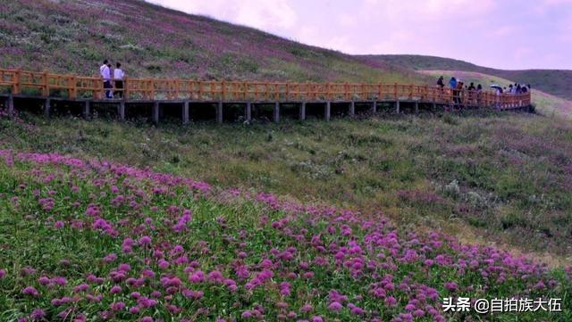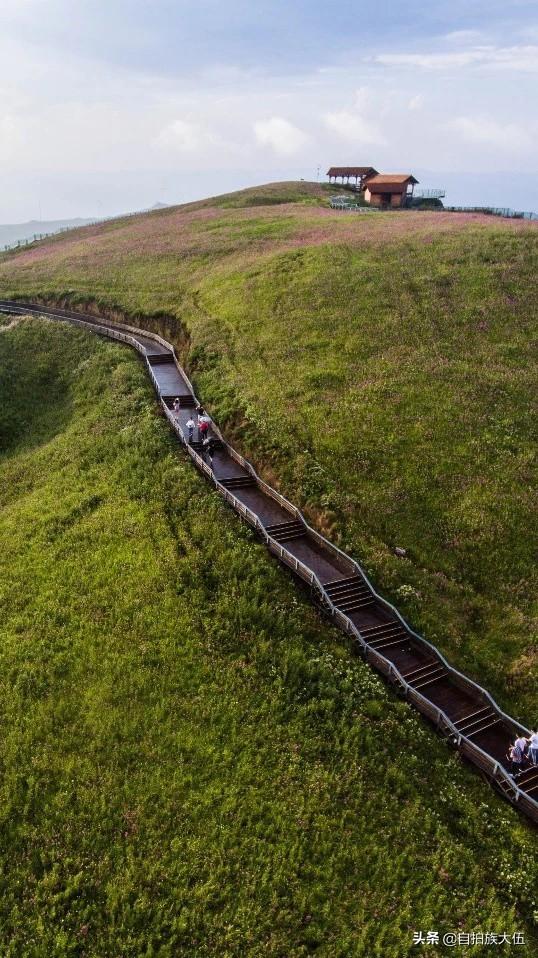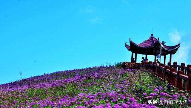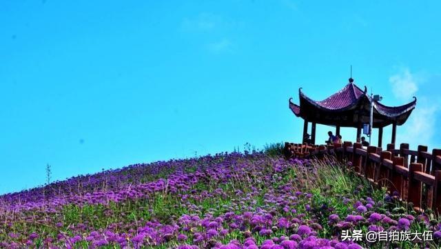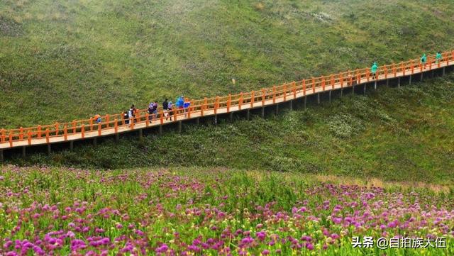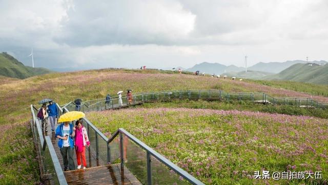 如果要去韭菜坪景区,最好的时间就是八月底到九月底这个时间段,通常这个时间已经过了雨季,但是又还不太冷,沿着山顶起伏修建的栈道一路前行,栈道两旁是一望无际的紫色花海,足以让人心旷神怡。