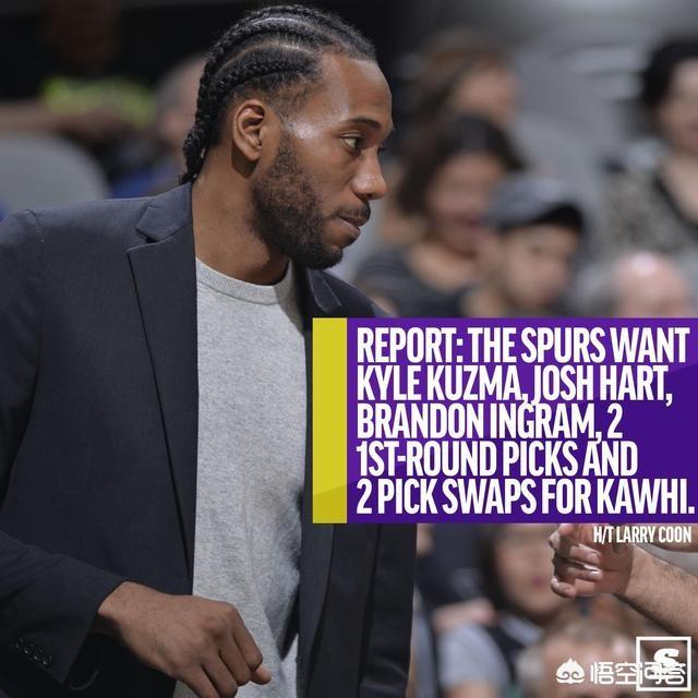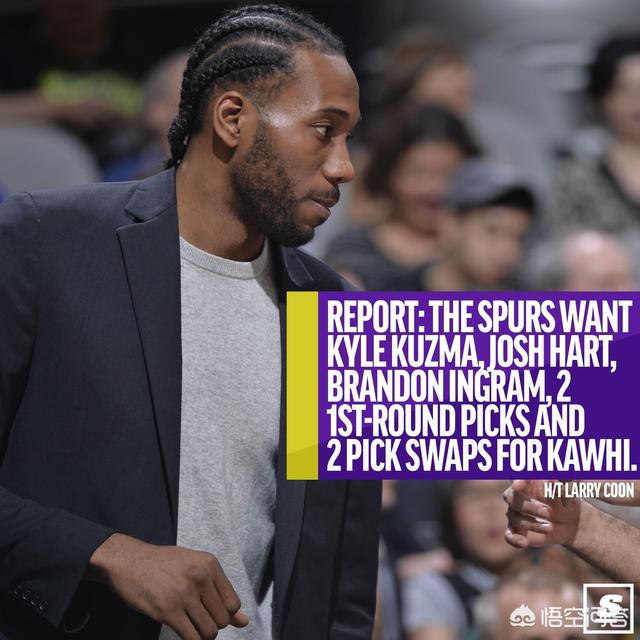 马刺希望湖人队送出——英格拉姆+库兹马+哈特+2个未来首轮签+2个首轮互换权,7换1,被拒绝。